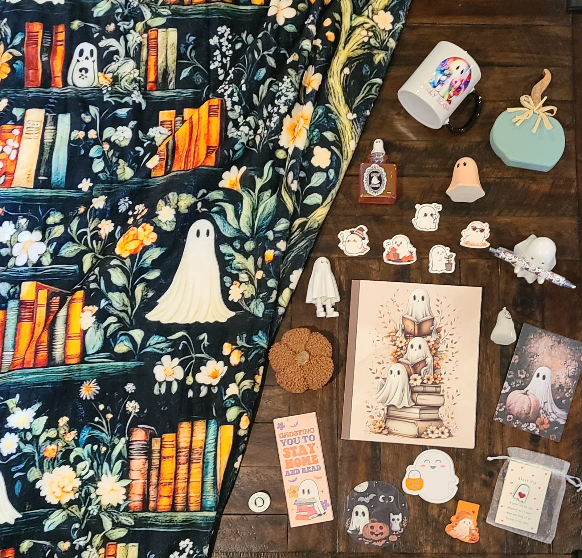 - 1 super soft, cozy blanket - 3 designs available featuring some adorably spooky ghosts, shelves of vintage books, whimsical florals, and plump pumpkins (size 50x60in/130x150cm)